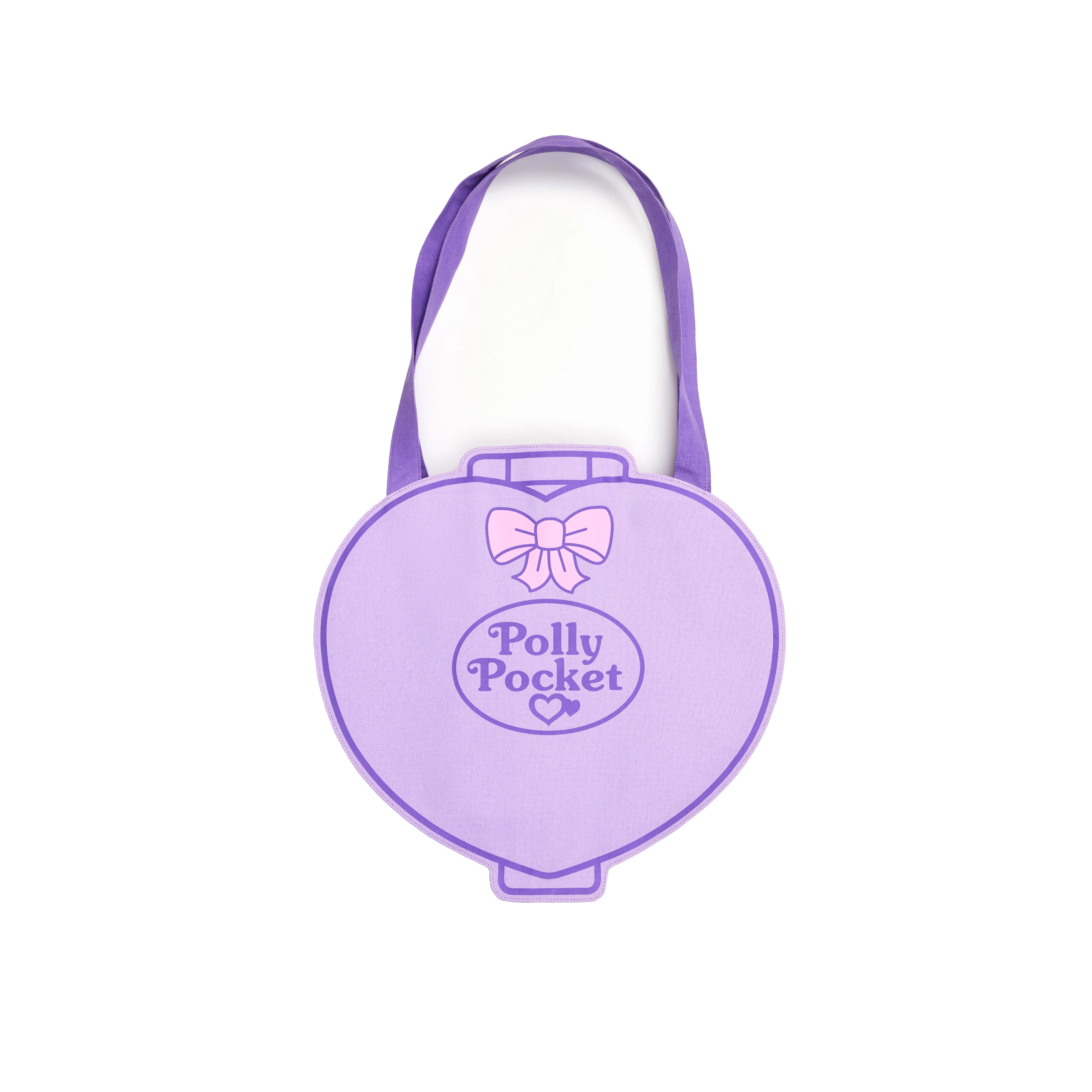 A Polly Pocket™ compact that’s not quite as compact as you remember! Introducing our Polly Pocket Compact Oversized Tote! This canvas tote features imagery of the iconic purple heart compact, Polly Pocket logo, and the cutest pink bow you’ve ever seen. It also fits way more than your old Polly compacts, maybe not your entire room, but close!
